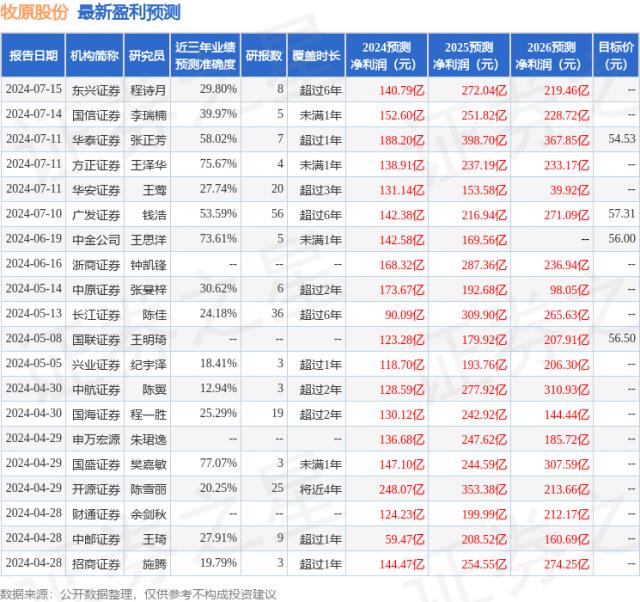 根据近三年发布的研究报告数据,郭盛证券樊嘉敏研究员团队对该股进行了深入研究,近三年平均预测准确度为 预测77.07% 2024 年度归属净利润为利润 147.1 十亿,根据现价转换预测。 PE 为 16.43。