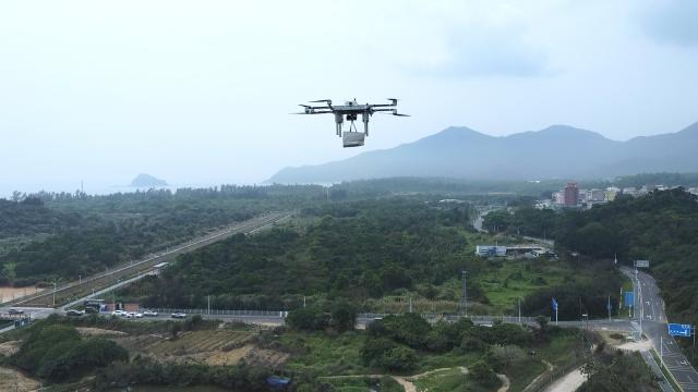 深圳东西涌开通景区无人机索降服务专线。深圳特区报记者 程海昆 摄