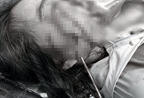 剪掉体外的伞骨后,医生小心翼翼地拔掉了插在钟女士脸上的伞骨。