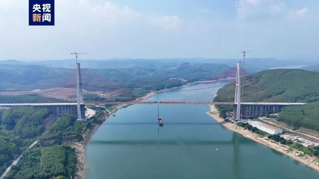 1月8日,武忻高速黔江特大桥成功合龙,成为广西合龙最高索塔和最大跨径斜拉桥,意味着武宣-嘉宾-合山-忻城高速公路主线全线贯通。