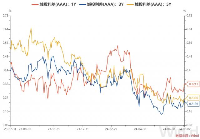 5. 最近城投债(AAA)每个期限的利差走势和数据