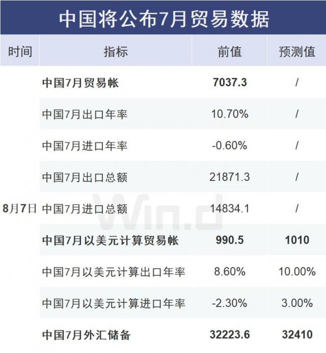 根据海关总署发布的数据,中国 6 每月出口(以人民币计费)同比增长 前值增加10.7% 11.20%;进口降低 0.6%,前值增加 5.20%;贸易顺差 7037.3 亿元,前值 5864 亿元。中国以美元计算 6 月度出口同比增长 前值增加8.6% 7.6%;进口降低 前值增加2.3% 1.8%;贸易顺差 990.5 亿美元,前值 826.2 亿美金。