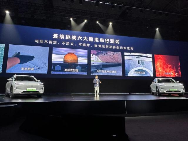 吉利银河 E5 首次搭载的天盾短刀电池虽然是民用级电池,但却具有“军工级”的安全性。“天盾短刀电池已成功完成中汽中心” 8 针刺“实验,持续” 1 一个小时后仍然没有烟雾,没有火灾,没有爆炸; 5.8mm 实验中贯穿实弹,天盾短刀电池同样不起火,不爆炸。另外,天盾短刀电池的同一个电池组,也顺利通过了中汽中心 6 严格的串行试验。