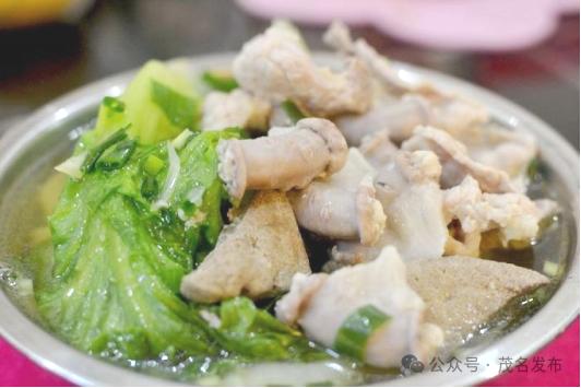 水东猪杂汤粉和其他地方猪杂汤粉的区别在于汤底是原猪杂汤,完全没有味精。一碗猪杂粉好吃不好吃,就看汤底了。一碗好的猪杂粉汤底很甜。猪杂沾盐水,味道不比酱油差。这种独特的地方风味让电白人很难不爱它。