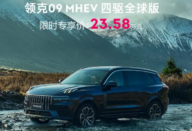 领克 09 MHEV 四轮驱动全球版推出 8 每月限时购车政策、综合购置税补贴、置换补贴等一系列权益后,该车限时专属价格为 23.58 万元。具体来说,折扣涵盖了 10000 15000元置换补贴, 购置税补贴5000元, 元现金补贴。