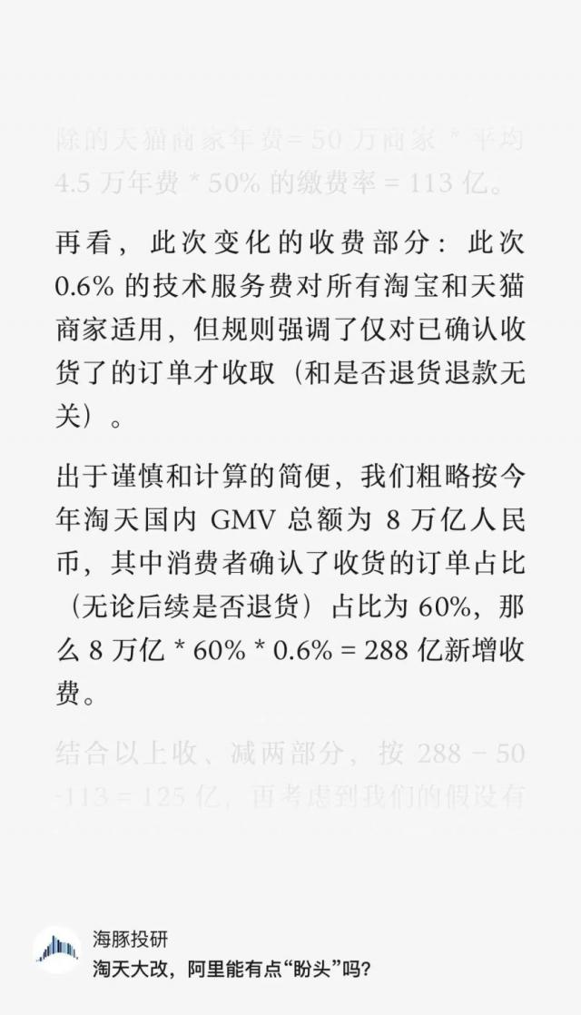 淘电商,包括以闲鱼为主的个人玩家为主的二手平台,都开始征收。 0.6% 基本软件服务费用。0.6% 这个比例看起来不大,但是如果把淘系庞大的商家数量作为数量,那就是一笔泼天的财富。