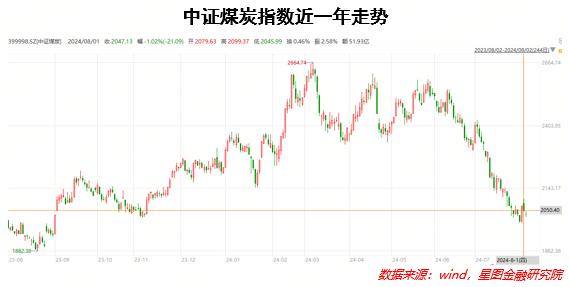 在这一轮下跌之前,煤炭曾经是近一年市场上表现最好的行业之一,特别是在这一轮下跌之前。 2023 年 8 月至 2024 年 5 月份期间,与月份相比 A 股票大幅下跌,普遍下跌,煤炭与市场的超量相比越来越珍贵。