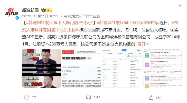 另外,韩寒投入的“很高兴遇见你”被曝亏损数千万元。;张翰主办的烧烤品牌烧烤前不久新增破产审查案件;关晓彤的代言,他父亲间接持有的奶茶品牌,自然被限制消费...进入餐饮业的明星很多,但是明星餐饮业却很难产生“明星”。