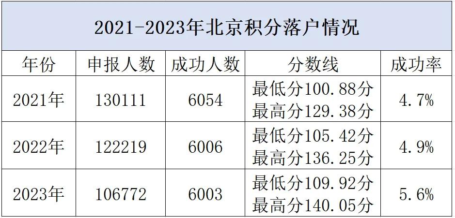 2021-2023年,北京每年至少有10万人在竞争积分中定居,而那些真正能拿到户口本的人,这几年每年都保持着6000的规模,通过率只有5%上下。