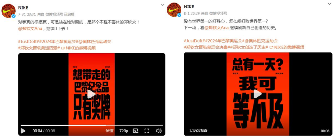 当郑钦文击败世界第一的斯瓦泰克,晋级网球女单决赛时,耐克微博迅速发帖称:“没有世界第一的竞争力,如何才能击败世界第一?”