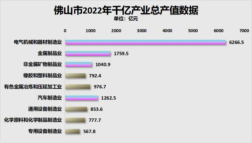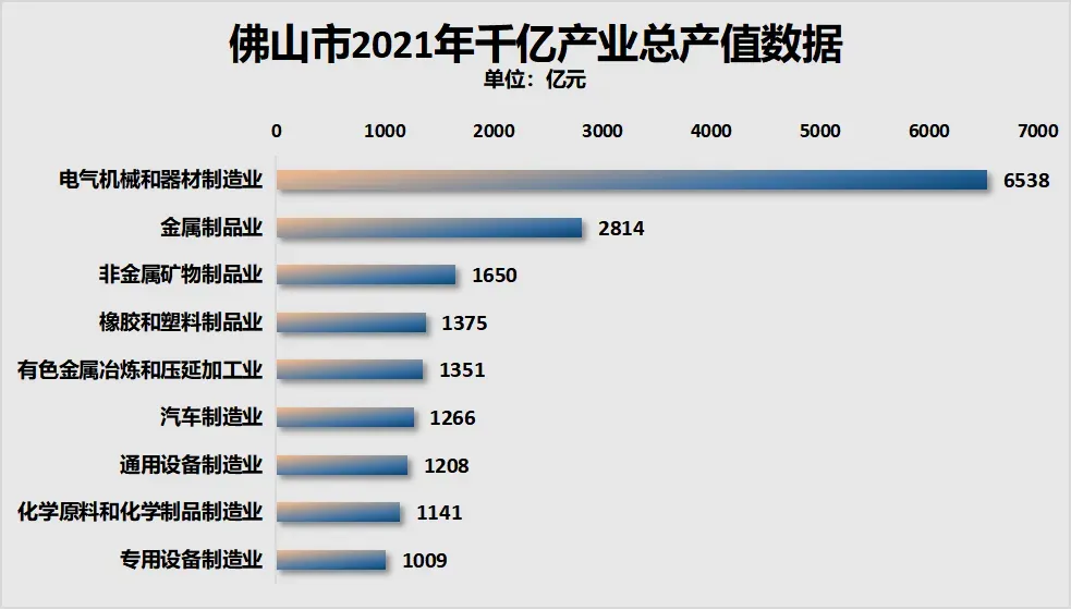 根据2021年的数据,佛山的行业是电气机械和设备制造业,其次是金属制品行业。
