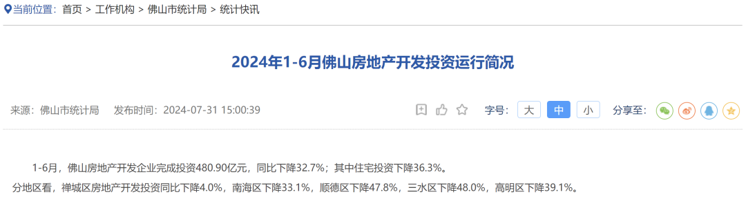 七月三十一日,佛山市统计局公布了上半年的数据:
