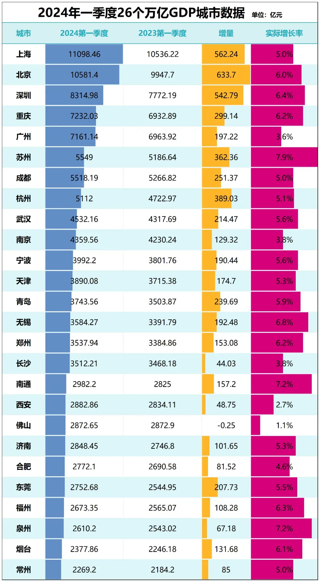 在26个万亿GDP城市中,无论是去年上半年的增长率、实际增长率还是名义增长率,都是倒数第一。