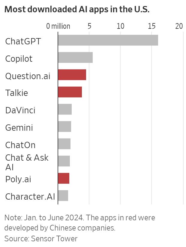 据 Sensor Tower 最新数据,Talkie 自今年以来,美国市场的累计下载量为 380 万次,排名第四,仅次于第四, ChatGPT、Copilot 以及作业帮助开发的在线开发 AI 指导应用 Question.ai。