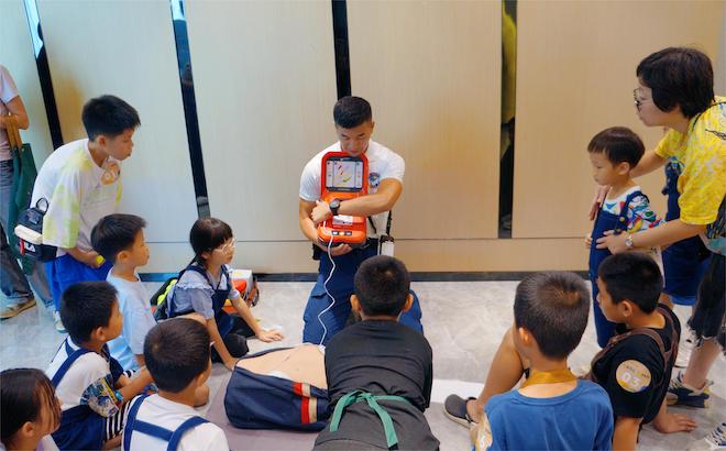 在这次“碳”寻找之旅中,主办方通过开展公益课堂,普及和培训了参与家庭的AED抢救常识,并向参与家庭展示了越秀房地产基金多年来在建筑数字智能应急救援体系中的探索和成就。建筑公共区域覆盖600多个“救命码”标志。当人员生命安全事故突发时,周边人员可通过微信扫描救命码求助。服务中心工作人员可以立即收到求助信息,并组织实施救援。与此同时,大楼配备了3台AED除颤器,可以随时用于抢救,为有需要的人夺回“黄金救援时间”。越秀房地产基金通过对其建筑不断迭代的全方位智能化运营,多年来一直以标杆的示范作用,推动广州CBD写字楼逐步应用“数字化” “抢救”标准化服务体系,帮助建立政府、学校、企业和全社会共享共建的急救体系。