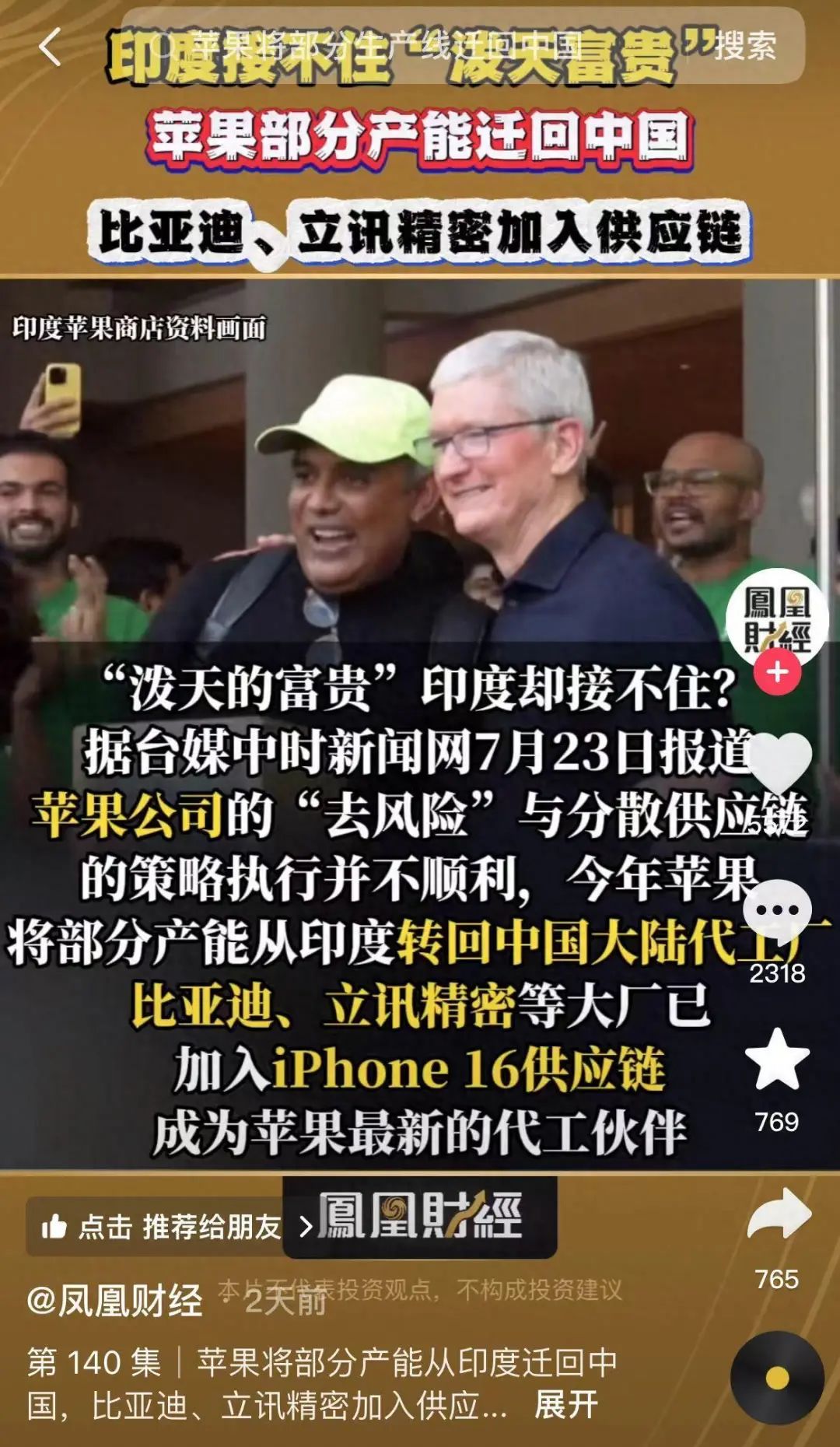 第二,苹果要想加强印度供应链,需要中国厂商在印度深耕,不能杀鸡取卵。