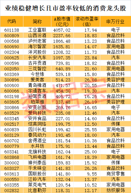 大消费领域涉及行业普遍。数据宝以食品工业、家用电器、商业零售、纺织服装、消费电子、游戏、社会服务、美容保养、汽车等与日常消费、可选消费密切相关的行业为基础。,选择业绩稳步增长、市盈率低的超卖龙头股票。具体条件如下: