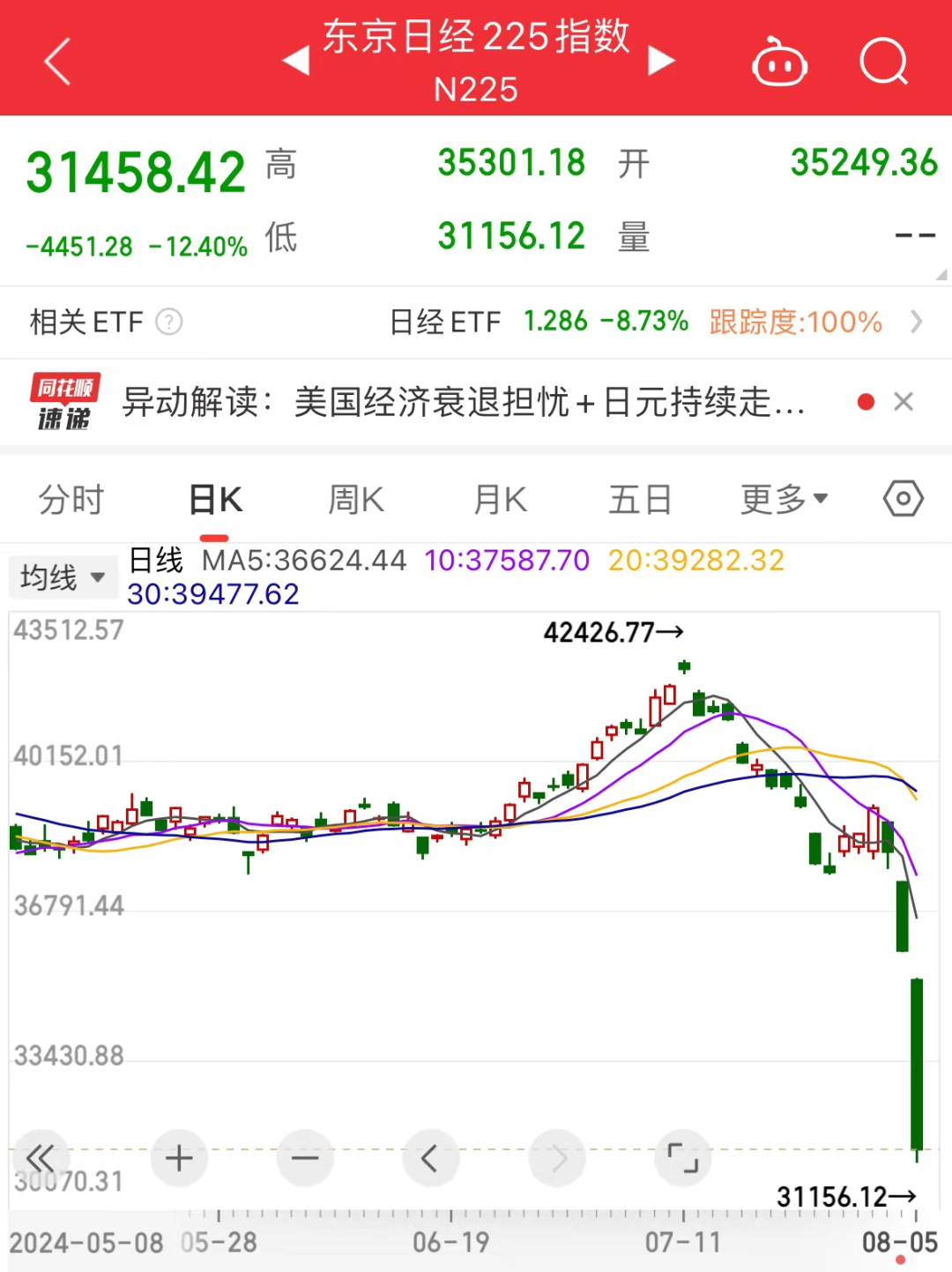 8月2日,日经225指数暴跌,原因是加息带来的汇市波动,投资者担心美国经济前景和高科技企业业绩低于预期。