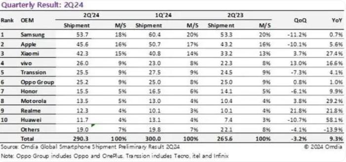 令小雷有些吃惊的是,OPPO竟跌出前五,变成了前五,「Others」,另一个国产手机品牌通过自己在非洲的成就成为世界第五。此外,荣耀和华为在2024年退出了许多产品实力极高的产品。也许今年下半年,这个排名名单会再次改变。