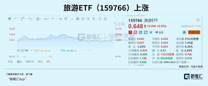 而旅游业ETF(159766)表现也不错,即使下午市场大跌,ETF仍收涨近1%。