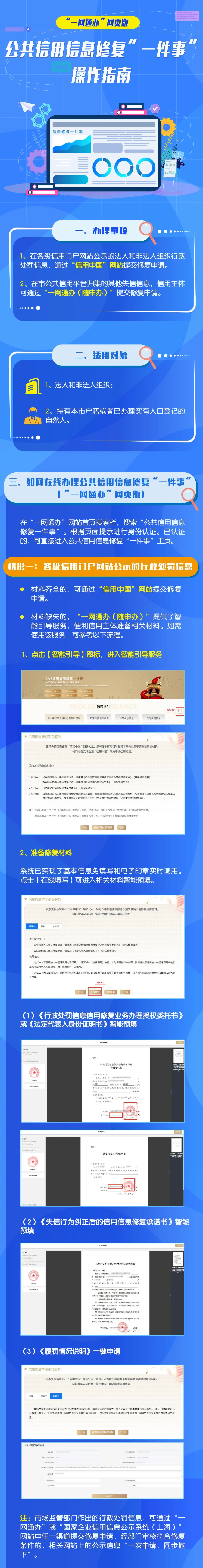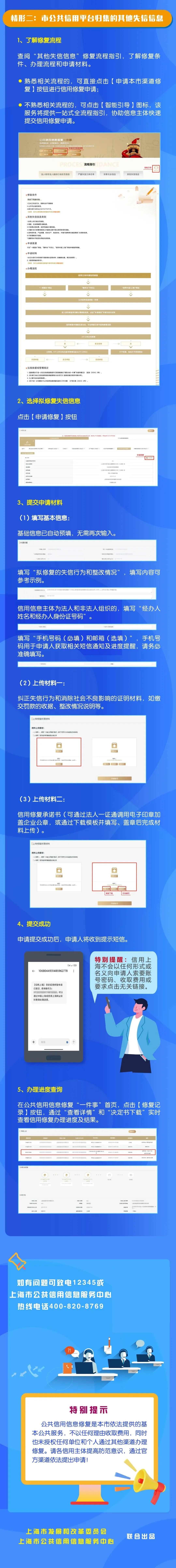 市发改委表示,为加快社会信用体系建设,保障信用主体公共信用信息修复权益,帮助优化经营环境,近日发布《关于进一步优化政务服务、提高行政效率、推进“高效做好一件事”的实施意见》和《上海市社会信用条例》,《关于进一步完善本市公共信用信息修复机制的工作方案》,自2024年8月1日起实施。“一件事”2.0版本的地方公共信用信息修复同步上线。操作说明如下↓