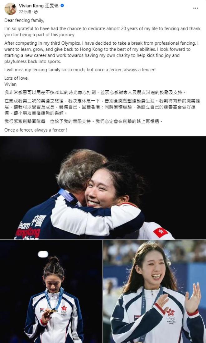 8月4日,巴黎奥运会女子重剑个人赛金牌获得者、中国香港选手江邈,在社交媒体上宣布告别全职击剑运动员生涯。