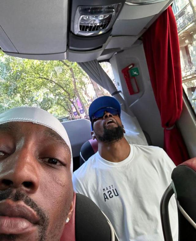 在美国男篮的球队巴士上,阿德巴约曝光了杜兰特睡觉的场景——杜小帅戴着棒球帽和太阳镜,睡在座位上,张着嘴睡着了。显然,杜兰特太累了。