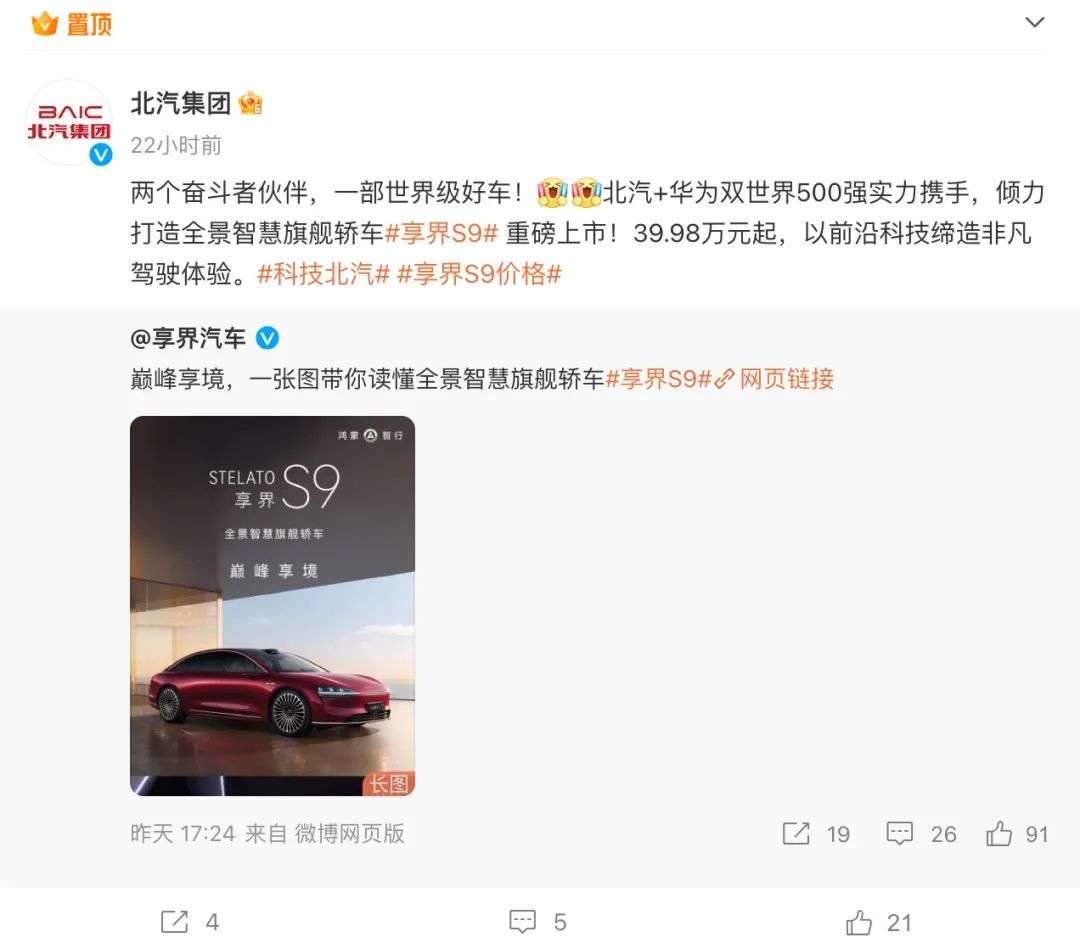 享界 余承东微博S9/图源