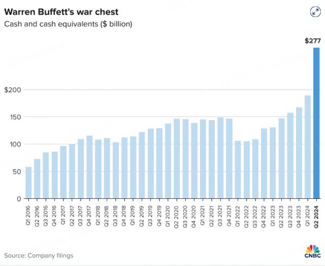 根据季度财务报表,第二季度末,总部设在内布拉斯加州奥马哈的公司持有。 2346 短期国库券亿美元,同时拥有超过10亿美元的国库券。 420 十亿美元的现金和现金等价物,包括三个月或更短的国库券。
