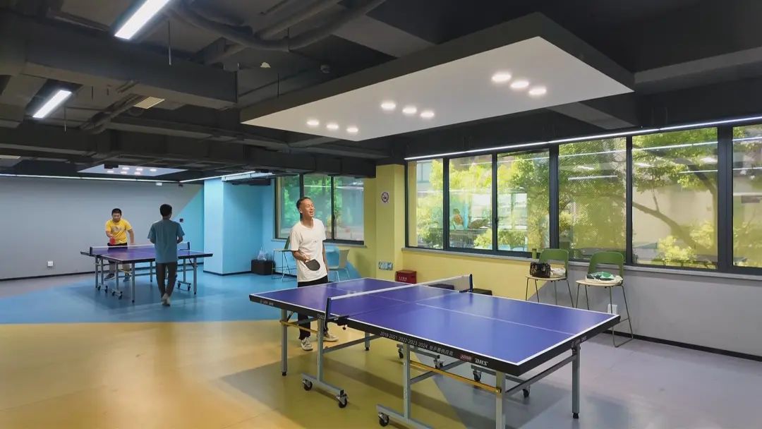 除了跳筋,还有一个投核游戏,让爷叔们沉迷游戏。今天是全民健身日,市民健身栈的每个地方都是免费向公众开放的。三楼的两张台球桌和乒乓球桌从一大早开始就没有被冷落过。