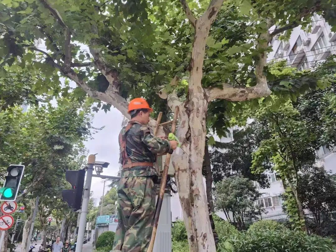 在防洪防台时要特别注意枯枝掉落的隐患,要及时注意树木的病虫害,及时发现病虫枝和枯枝进行修剪。