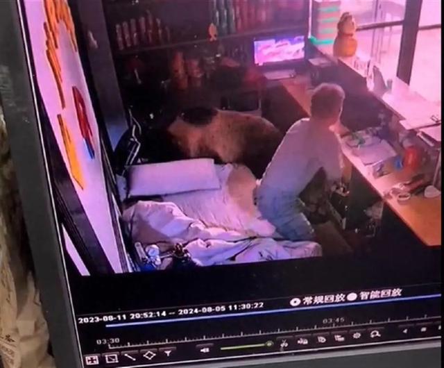 8 日,九派新闻联系了酒店老板张先生。张老板回忆说,事件发生在凌晨。 3 左右,熟睡的男人是他的儿子。他没有听到任何声音。当棕熊翻箱倒柜找食物时,他被吓醒了。当他发现是熊时,他立即趁不准备溜走了。