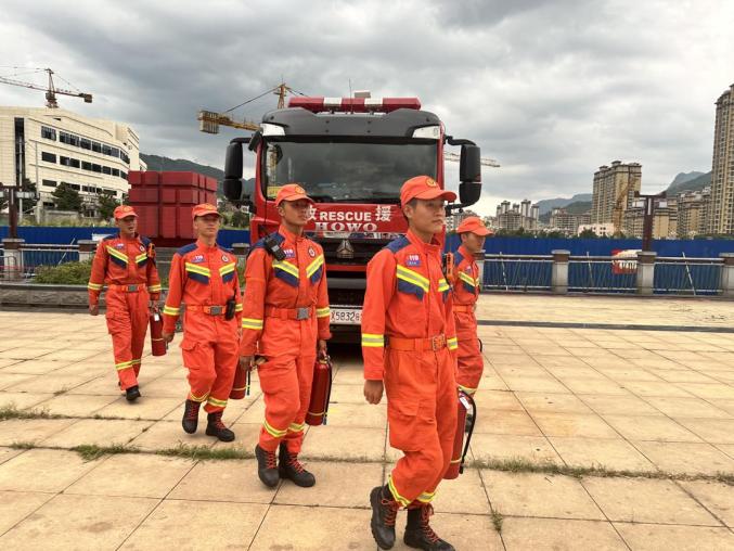 8月3日,织金县2024年火炬嘉年华暨“来织金赶大集”活动在织金平古镇织金酒店前广场举行,织金县消防救援大队在活动现场值班。