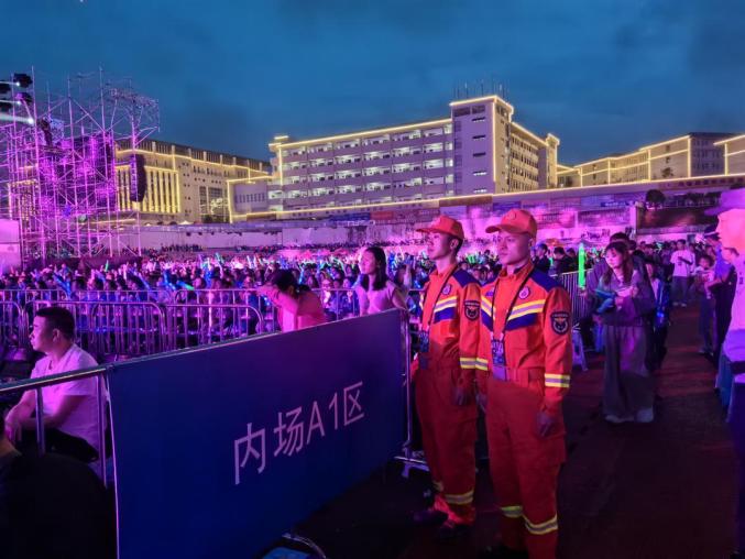 八月四日,2024年“阳光威宁·浪漫草海”“巨星行动”系列活动“巨星行动”每日火把节暨避暑旅游季节 威宁县贵州工贸职业学院运动场举办的“情定草海”群星演唱会,威宁县消防救援大队在演唱会现场值班。
