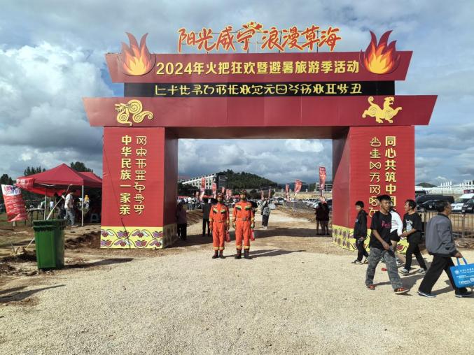 7月21日至22日,威宁县消防救援大队在“阳光威宁浪漫草海”2024威宁火炬节暨避暑旅游季雪山镇灼甫草原分会场值班。