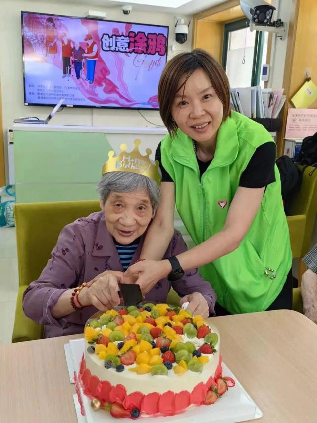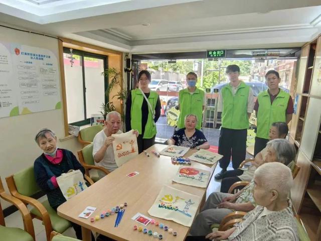 在浦桥老人的护理之家,在志愿者的带领下,老人们拿起画笔,在帆布袋上涂鸦,画出党旗、党徽、天安门广场、手表等图案。涂鸦作品寄托了两代人对党和国家的深情热爱和崇敬。老人和志愿者聚在一起唱生日歌,分享甜蜜的蛋糕,感受美好的时光。