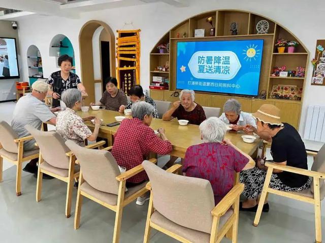 在"浦汇 · 在我的记忆中,“蒙西日间护理中心,工作人员为老年人提供一系列特殊的夏令服务,如夏季防暑降温、夏季凉爽,以及凉爽的西瓜、凉爽的绿豆粥、清热的花茶等零食和饮料,邀请医生进行中暑预防相关健康讲座,通过各种活动帮助老年人顺利度过炎热的夏季。