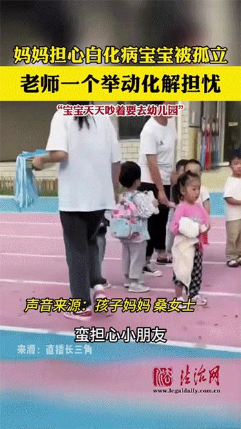 母亲担心白化病女儿上幼儿园被孤立,结果看到暖心的一幕:安徽亳州。桑女士分享了一段引起网友关注的视频。视频中,她正在幼儿园接女儿回家。桑女士说,她的孩子患有白化病。上幼儿园前,她担心孩子会独立或者挤兑他。然而,当她接待她的女儿时,她看到老师高兴地跑到她身边,孩子们围着她说说笑笑。看到老师和朋友的小同学都很喜欢她,她突然放松了。