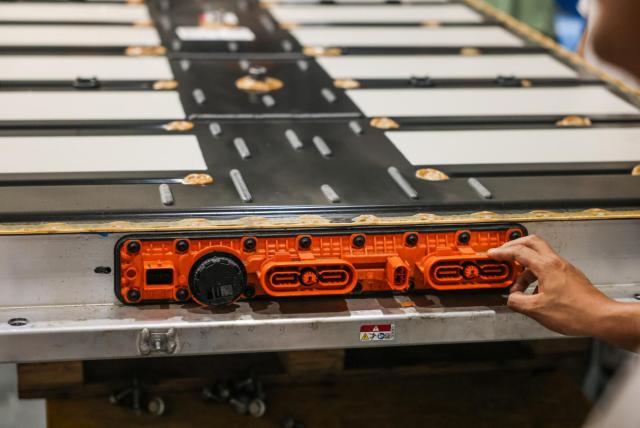 如果从电池组内部寻找答案,可以发现整个电池模块, 12 高强度铝合金框架包裹由铝铸造横梁组成,像巧克力块一样形成阵容。优点是即使单个模块受损,也尽量不影响其他模块,从而降低热失控的传播率。