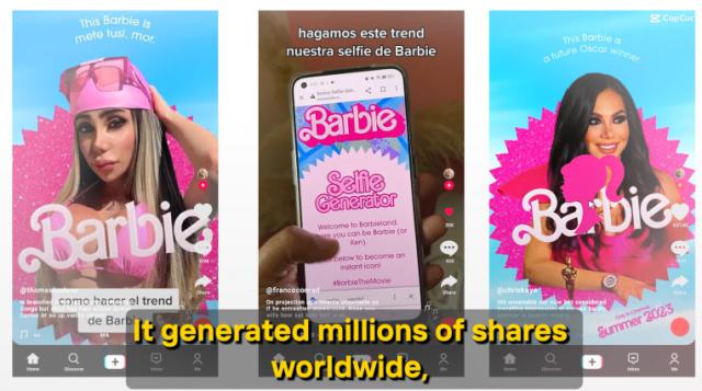 影片热播时,联合 PhotoRoom 制作了一个“芭比”自拍生成器,可以将自拍嵌入个性化海报中,通过在线社交平台大力推广。活动期间,生成图片的频率超过100万。