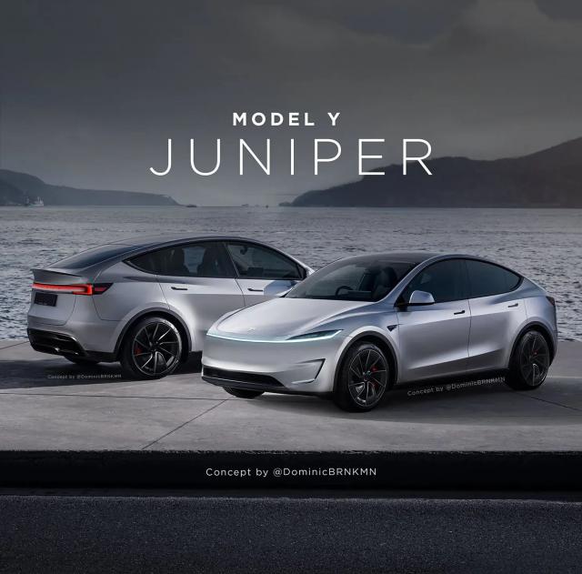 被称作 Juniper 新款特斯拉 Model Y 还有最新的效果图,它的车头和车尾都可以选择贯穿式车灯设计,甚至还有相关的谍照可以证明这一思路。