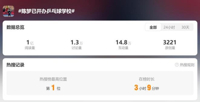 题目:“热搜第一!陈梦开办乒乓球学校,特训营20天9000元包住宿”