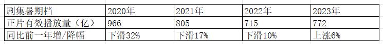 从历史数据来看,2021年的剧集暑期档并没有因为奥运会而呈现出流量低谷。根据云和报告,2021年暑期档整部电影的有效播放量为805亿。前后几年,虽然市场一直在萎缩,但仍有起伏,2021年没有特别受影响的情况。
