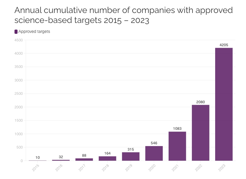 根据SBTi官网的数据,截至2023年底,拥有SBTi科学碳目标的企业数量比2022年底翻了一番。