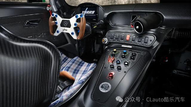 赛车座椅顶部用浅棕色皮革包裹,方向盘枪托采用胡桃木材质,营造出独特的奢华感。
