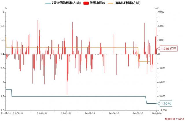 央行 8 月 16 日以固定利率、数量招标方式进行 1378 亿元 7 天期逆回购操作,操作利率 1.70%。Wind 数据显示,当天 129 逆回购到期1亿元。