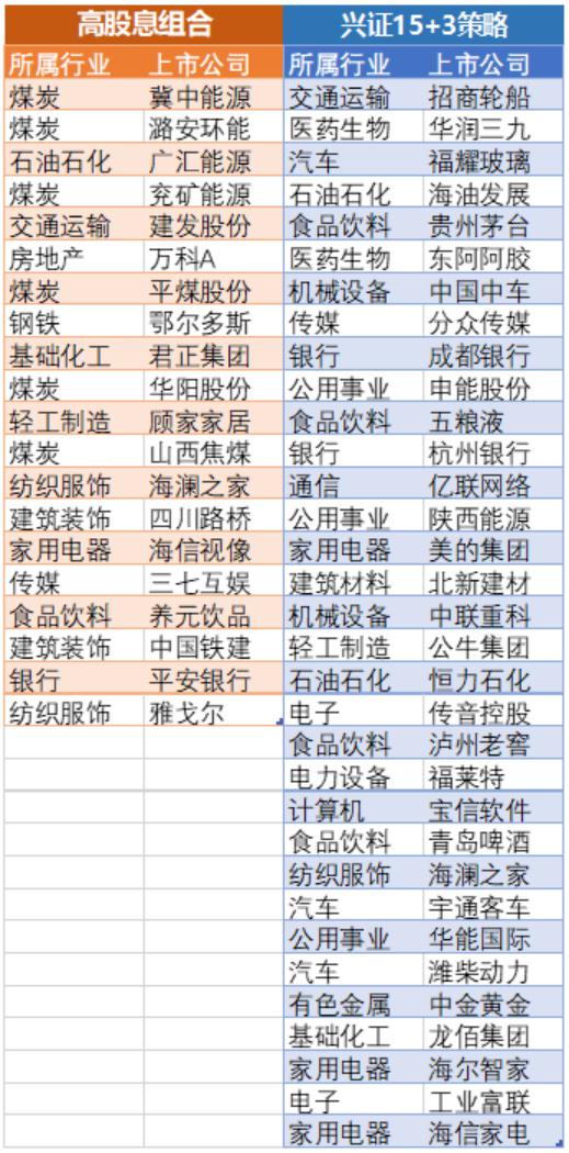 最终,正是因为高股息策略本身的行业限制,主要目标基本没有增长,所以回报率基本相当于股息率。如果你想长期赢得市场,光是股息率是不够的。因此,兴业策略提出了一个 15 3 组合的概念,就是 15% 盈利增速 3% 股息率,希望能构建年化。 18% 配合回报率。