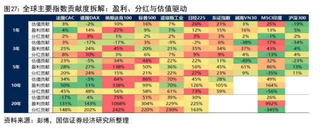 过去是美国股市 150 2008年的历史,标普 500 在指数收益中,有 49% 即将近一半可归结为股息,45% 归纳为利润增长,只有估值倍数扩大。 6%。近期 10 年度股息贡献比例降至 15%,看起来在缩水,实际比重可能没有太大变化。