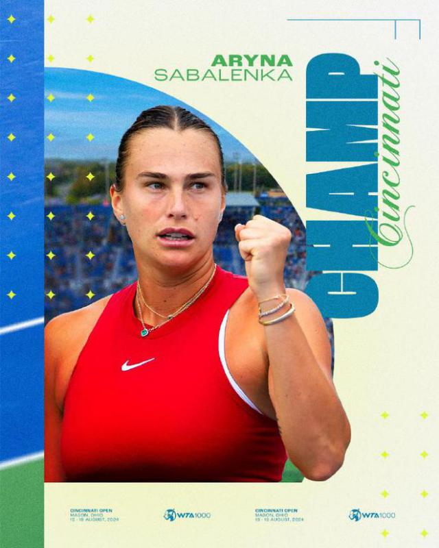 北京时间 8 月 20 日,2024 年 WTA1000 辛辛那提大师赛女单决赛,两次澳网冠军,3次 种子萨巴伦卡对战 6 佩古拉号种子。萨巴伦卡以 6-3 和 7-5 连胜两盘,最终萨巴伦卡总分。 2-0 狂扫佩古拉,一盘没有失去辛辛那的冠军,夺得赛季第一名 2 冠与生涯第 6 座 1000 比赛冠军,也是职业单挑第一 15 冠。