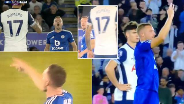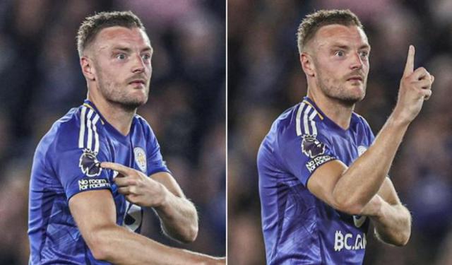 接着,瓦尔迪又讽刺了看台上的热刺球迷。他指着球衣上的英超臂章,然后竖起一根手指,然后指着热刺球迷,做出了一个手指。 0 手势,意思是:“老子是英超冠军!而且你们 0 冠军!"